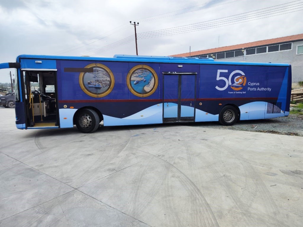 Η εταιρεία ΕΜΕΛ προχώρησε σε ευγενική δωρεάν παραχώρηση λεωφορείου της, στο οποίο θα προβάλλεται για περίοδο τριών μηνών, το επετειακό λογότυπο της Αρχής Λιμένων Κύπρου για τα πενήντα χρόνια από την ίδρυση της.